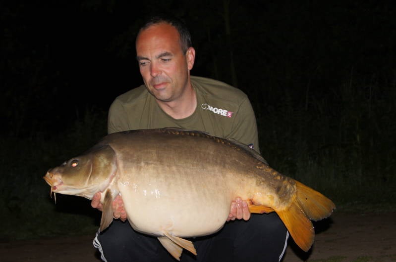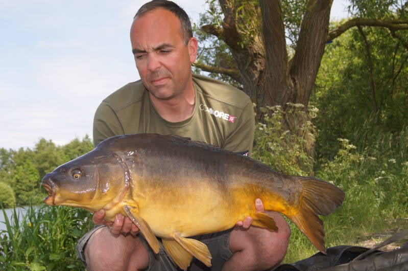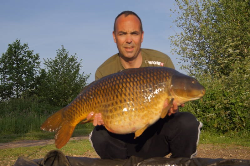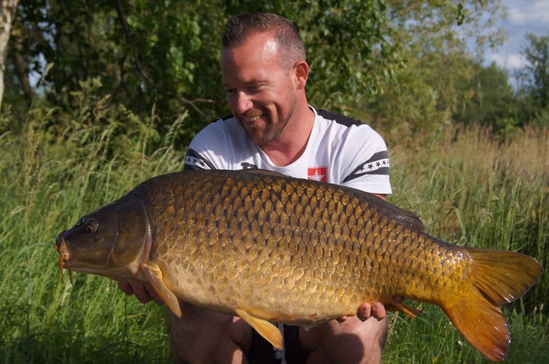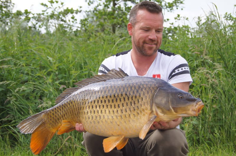 Op dinsdagochtend, als Rico nog alleen zit, weet hij een zeer imposante schub te vangen van ruim 18 kilo. Een verrassing want heel veel van dit formaat zwemmen er niet op deze plas. Als Rob arriveert gaat er al vrij snel een tweede hengel af. En zo blijven we deze dagen regelmatig mooie vissen vangen. Iets wat op de andere stekken niet gebeurd.