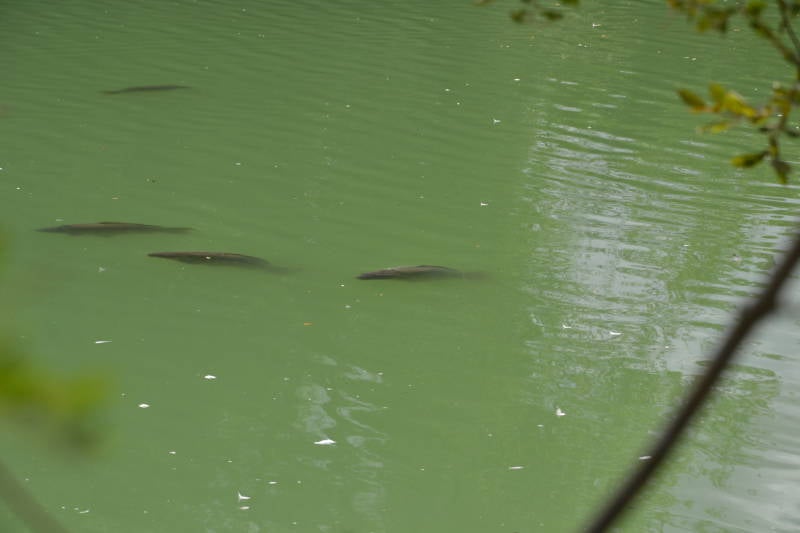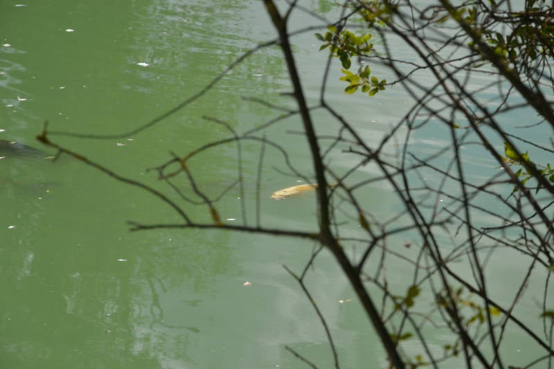 Lex vangt langs de kant z'n vissen. Vooral de verre boom levert veel vis op.