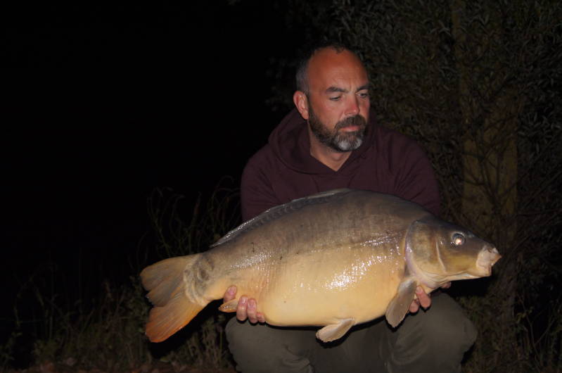 Eenmaal aangekomen na een lange rit worden we keurig verwelkomd door monsieur Lecene. Er is genoeg plek. De grote plas is zelfs helemaal vrij en de 12 hectare plas, waar we bekend zijn, daar zit maar één visser. We kiezen voor deze laatste plas en gaan heerlijk zitten op stek 16. Onze 'huisstek' zullen we maar zeggen. We weten wat te doen, voeren rustig en de hengels gaan op de bekende plekjes. s'Nachts vangen we gelijk een mooie spiegel en op de donderdag en vrijdag vangen we er elf stuks bij. Met twee hele mooie 17 kilo vissen voor Rico gaan we heel content naar huis op vrijdagmiddag. Voor het slechte weer dat eraan komt. We zijn echt net op tijd. De regen komt met bakken uit de lucht. Met een goed gevoel rijden we terug naar Nederland en hebben we weer een hoop geleerd. Waarom zo moeilijk doen als het makkelijk kan? We doen het lekker op onze manier. Niks mis mee.