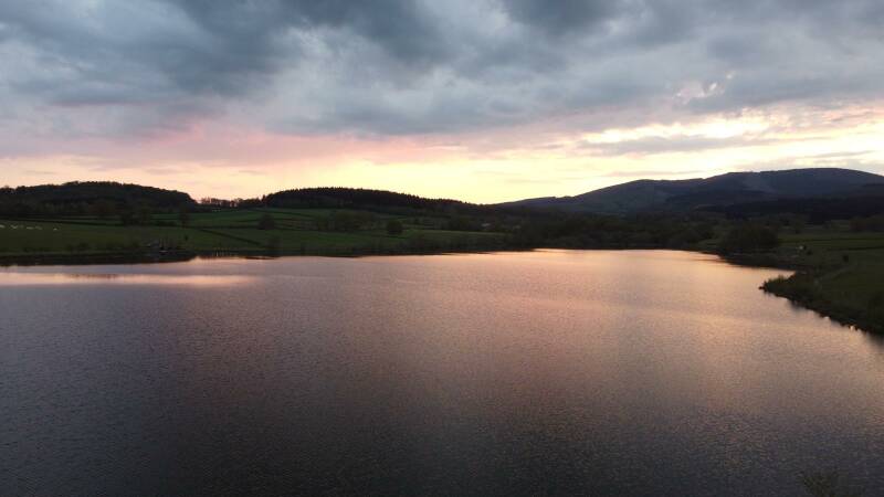 En mooi is het zeker! Boven twee foto's met de drone genomen. Duidelijk te zien hoe prachtig het tussen de bergen ligt. Linksonder stek 18. Rechtsonder uitzicht op stek 17.