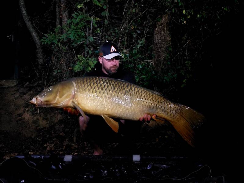 We hebben deze week, voor Cavagnac begrippen, erg goed gevangen. Vijftien karpers met een prachtige schub van 22 kilo als zwaarste vis. Echt elke karper is uit de lelies vandaan getoverd. Ze hebben zich allemaal vast gezwommen en met z’n tweeën hebben we soms flink moeten ploeteren om ze los te krijgen. Zeker de vissen in de nacht zorgden voor een grote uitdaging. Een voorslag is verboden, evenals een vast loodsysteem. Zorg dus voor een stevige hoofdlijn en genoeg lood bij om te lossen bij elke aanbeet.