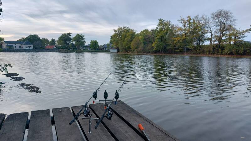 We vissen in een uitloper van het water die uitkomt, rechts van ons, bij een dam. Hier is het diepste stuk water van het meer en is zo’n drie meter diep. Naar de overkant is het zo’n 60 meter en die staat vol met lelies. Nu in oktober niet in volle bloei maar nog dik genoeg om van flinke leliegroei te spreken. We krijgen van Mark het advies om hier, en sowieso op elke stek op het water, hier zo dicht mogelijk tegenaan of zelfs in te vissen. Hier houden de vissen zich op, hier moeten we zijn. Daarbij ook de tip om met de home made boilies aan de slag te gaan. Dit hadden we via via al opgevangen dat dit het verschil zou gaan maken. Het advies nemen we ter harte en raden we ook een ieder aan die hier heen gaat. Een aantal Spanjaarden naast ons deden dit de eerste paar dagen niet en kregen de deksel op de neus. Eenmaal overgestapt op de mangoboilies van chef Mark begonnen de vangsten. En wel echt direct.